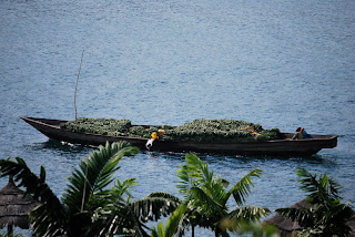Deciding to take advantage of the early morning and the light, we began walking down the one-way loop road that winds throughout Kibuye to see the sights of the small but busy town. Chickens, goats, and a variety of birds greeted us along the way, but the highlight of our stroll was a chance to see the fishing boats come in from an evening of catching tilapia and sambasa on the lake.