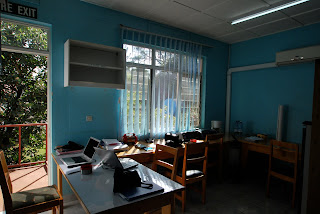 Above is the view overlooking PSF from the building where my office is located. The building straight ahead holds the only Accredited Laboratory in East Africa outside of Nairobi. The building to the right is the clinic building where the clients of PSF are seen 7 days a week by our nurses and counselors. The second picture above shows the walkway from my office to the clinic building. Below is the office that holds the physician and counselors' offices (including mine) that double as clinic rooms when necessary.