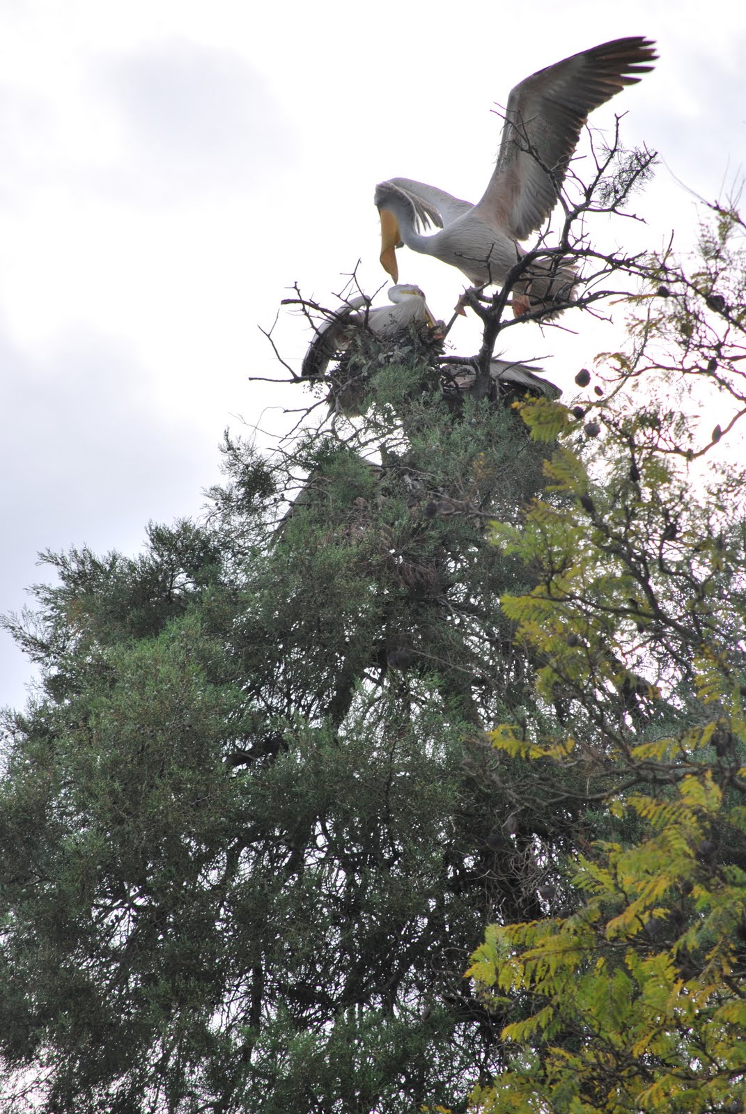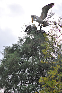Above is the office that I share with the other ex-pat interns. Below is the view out of our window and the nest of pelicans that live in the top of the tree by the wall.